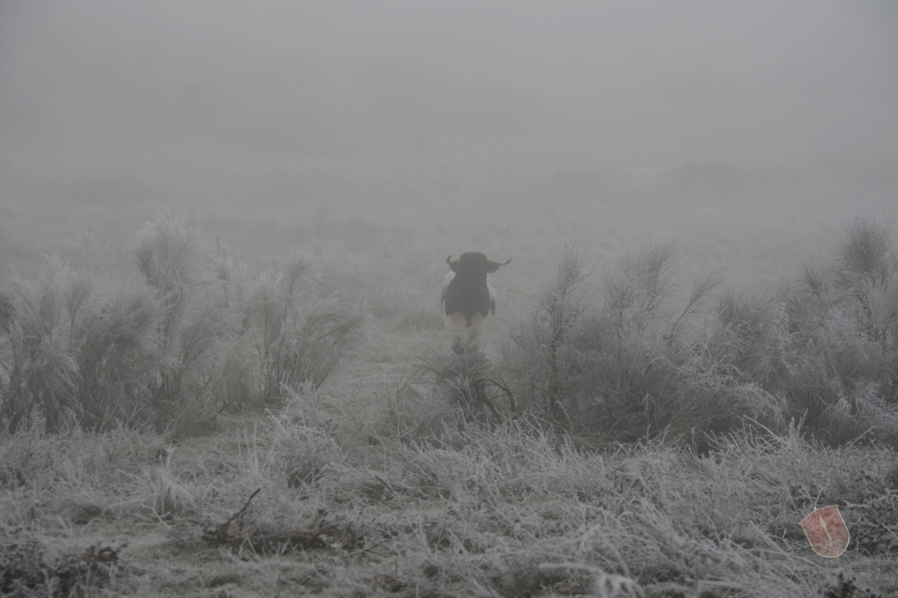 Ya en la dehesa, bajamos despacio apartando las retamas heladas y